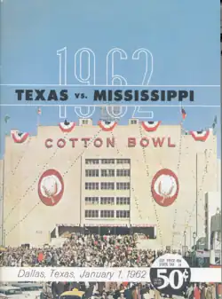 The 1962 Cotton Bowl Classic was the 26th edition of the college football bowl game, played at the Cotton Bowl in Dallas, Texas, on Monday, January 1. Part of the 1961–62 bowl game season, the game featured the No. 3 Texas Longhorns of the Southwest Conference (SWC) and the No. 5 Ole Miss Rebels of the Southeastern Conference (SEC). Ole Miss was slightly favored, but Texas won, 12–7.[2][3]
