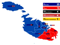 | Nationalist Party | 1926[b] | Giorgio Borg Olivier | Christian Democracy | Centre-right to Right-wing | 17 / 40