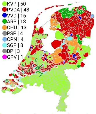 The elections led to a four-party coalition government initially consisting of the KVP, People's Party for Freedom and Democracy, Anti-Revolutionary Party (ARP) and Christian Historical Union. In 1965 this coalition was replaced by one consisting of the KVP, Labour Party and ARP.