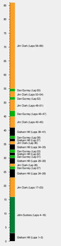 This race was Scuderia Ferrari's 100th start in a World Championship event as a team.[1] Jim Clark became the first driver to win the World Drivers' Championship with 3 races left to go. Lotus-Climax also won the Constructors' Championship.