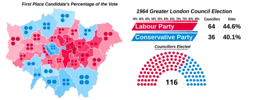 The first election to the Greater London Council took place a month before the first election to the 32 London borough councils on 7 May 1964.