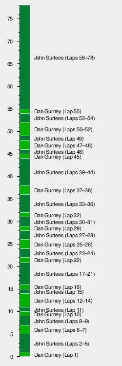 | 6 | 10 | Lotus-Climax | 77 | + 1 lap | 8 | 1 | |