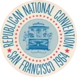The 1964 Republican National Convention took place in the Cow Palace, Daly City, California, from July 13 to July 16, 1964. Before 1964, there had been only one national Republican convention on the West Coast, the 1956 Republican National Convention, which also took place in the Cow Palace. Many believed that a convention in San Francisco indicated the rising power of the Republican Party in the west.[1]