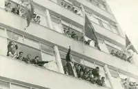 A Navy helicopter and a yellow plane flew over the Union. Curious family members and girlfriends brought supplies and cigarettes.[117] The emotion inside was one of distress, with the sailors feeling defensive. Statements by Anselmo and Antônio Duarte also describe a loss of control; Duarte points, in particular, to "Tatá's" speech as destabilizing.[118] On the other hand, in making its demands, the movement was not on the defensive.[119]