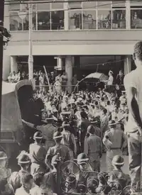 The sailors were taken from the Union in Army trucks and detained at the Guards Battalion, in São Cristóvão, for three hours. As of 5:30 pm they were released.[93] On the way back, some stopped at the Candelária Church. It was Good Friday, and they prayed for those affected at the Navy Arsenal. As they were heading toward the Ministry of the Navy, Minister Paulo Mário sent Admirals Aragão and Suzano to advise the sailors not to continue. However, they were lifted by the shoulders and carried amidst the euphoria.[140] They passed the Ministry of War, startling the Army officers who silently watched the march.[111]