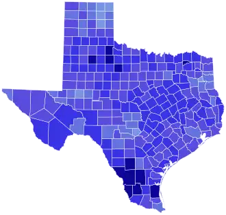 County results Connally: 50–60% 60–70% 70–80% 80–90% >90% |