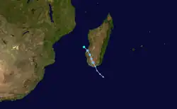 On January 7, Cyclone Denise passed north of Mauritius, producing wind gusts of 170 km/h (110 mph). Later, the storm crossed over Réunion, dropping record rainfall. Over a 24-hour period, Denise dropped 1,825 mm (71.9 in) of rainfall at Foc Foc, Réunion, of which 1,144 mm (45.0 in) fell over 12 hours; both precipitation totals are the highest recorded worldwide for their respective durations. Over 48 hours, precipitation totaled 2,230 mm (88 in) at Bras Sec. The heavy rains caused flooding that killed three people, and caused severe road and crop damage.[1][2][3]