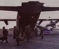 ![]() US Army soldiers disembarking from helicopters in the Ia Drang Valley | |||