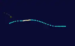 According to the Joint Typhoon Warning Center and Japan Meteorological Agency, on October 20 Tropical Storm Kathy crossed the International Dateline, entering into CPHC's area of responsibility;[14][15] however, this storm was not included into CPHC database. The storm eventually became extratropical on October 21 over open waters.