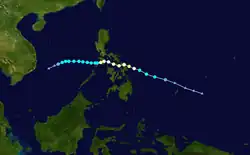 Severe damage took place across the Philippines, with Leyte suffering the brunt of Irma's impact.[4] Twenty people died across the country.[5] Preliminary reports indicated that Tacloban incurred $2.5 million in damage.[4] A gasoline explosion near Manila that killed 12 people and injured 18 others was partially attributed to the typhoon.[6] On May 17, the 740 ton vessel Pioneer Cebu sailed directly into the storm over the Visayan Sea off the coast of Malapascua Island after ignoring warnings to remain at port. Carrying 262 people, the ship struck a reef while battling rough seas in the typhoon.[4] Passengers began abandoning the sinking vessel soon thereafter under the captain's orders while message about the ship's sinking was relayed by the radio operator. A large wave then struck the ship on its side, capsizing and submerging it entirely. Of the passengers and crew, 122 went down with the ship, including captain Floro Yap, while 140 managed to escape.[7][8] Rescue operations lasted nearly two days, with many of the survivors being stranded in shark infested waters for upwards of 40 hours.[8] Of the survivors, 130 were picked up by a rescue ship while 10 others were found on nearby islands.[7] Only five bodies were recovered in the area while the rest were presumed to be lost with the ship in an area referred to as the "graveyard of ships."[8] A trading vessel, the Banca Alex, also sank off the coast of Cebu with 80 people aboard; 60 were later rescued while 20 others were never found.[9]
