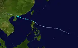 Severe Tropical Storm Fran, designated as "Mameng" by PAGASA, originated in the western Pacific on July 30 near the South China Sea. The storm tracked steadily westward over the next two days. By July 31, Fran intensified, reaching its peak intensity with sustained winds of 70 mph (110 km/h) and a minimum pressure of 975 hPa. Maintaining a consistent westward trajectory, Fran approached China's southern coast by August 2. At 18:00 UTC, it made landfall south of Guangdong Province as a weakening tropical storm. The system rapidly deteriorated over land, downgrading to a tropical depression within 12 hours. By August 3, Fran dissipated inland.
