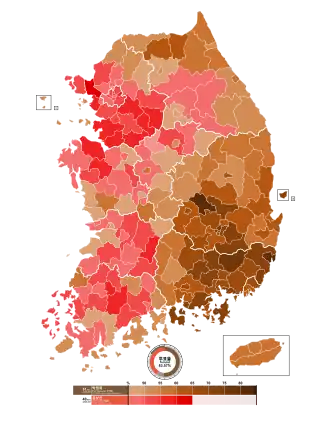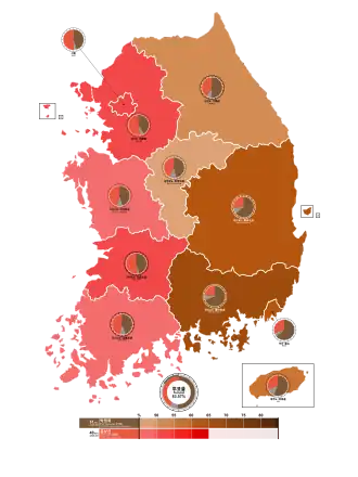 Chungnam 489,516 (45.4%) 505,076 (46.8%) 17,662 (1.6%) 27,295 (2.5%) 28,809 (2.7%) 10,560 (1.0%) 1,078,918