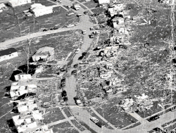 ![]() Aerial view of damage in Chesterfield, Missouri, after the F4 tornado of January 24, 1967 | |