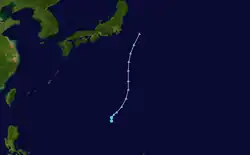 Kim formed southeast of Guam on May 28. It intensified into a Category 3 typhoon while curving northeast. Kim slowly weakened as it moved north. The storm dissipated on June 5.