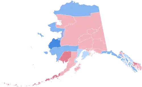 Wallace received over 12% of the vote in Alaska, unusually well for a state so far removed from his strongholds in the Deep South.[3] This would begin Alaska's reputation as a state where third party candidates of differing political persuasions do relatively well.