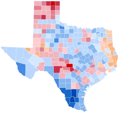 | Bexar | 95,325 | 51.56% | 72,951 | 39.46% | 16,598 | 8.98% | 22,374 | 12.10% | 184,874 | ||