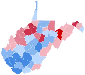 Strong unionisation meant that the state's predominant poverty-stricken white population did not turn to Wallace in significant numbers.[5] The state's relative loyalty to Humphrey was enhanced by its deep ties to the New Deal and the resultant unionisation, as in all of Appalachian coal country between the 1930s and 1990s.[6] This was helped by the fact that Johnson focused on this state, alongside Texas and culturally allied Kentucky, as critical for Humphrey's hope of regaining the White House.[7] Humphrey nonetheless did lose eighteen percent on Johnson's record performance from 1964.