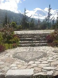Debris-flow deposits of Holocene origin make up the Río Llanganuco alluvial fan and underlie the Río Santa bed for depths of hundreds of metres in places, indicating that such flows have occurred here regularly for thousands of years.[1] Geologic evidence indicates that Yungay itself was "probably built on a flow or avalanche deposit."[6] The name of nearby Ranrahirca village means "pile of thrown stones" in Quechua, suggesting that debris avalanches have been observed in the valley since ancient times.[7] These destructive flows of snow, ice, mud and rock are locally termed huaycos.[8]: 426