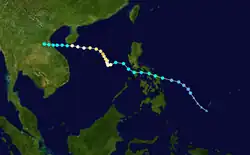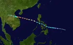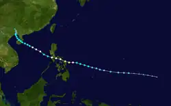 | Faye (Krising) | October 4 – 15 | Severe tropical storm | 985 hPa (29.09 inHg) | Philippines | Unknown | 13 | ||