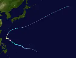 | Virginia | September 1 – 8 | Typhoon | 955 hPa (28.20 inHg) | Japan | Unknown | 56 | ||