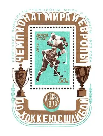 ![]() A Soviet stamp sheet dedicated to the 1973 World Ice Hockey Championships | |