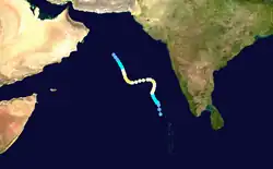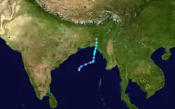 Cyclone Sixteen formed on 19 October and began to intensify, peaking as a Very Severe Cyclonic Storm or as a Category-1 equivalent storm on October 21. The storm made landfall at Porbandar in Gujarat at peak intensity on 22 October. Sixteen dissipated on October 24.[3][4]