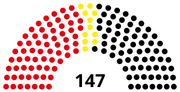 All 147 seats in the House of Representatives 74 seats needed for a majority | |||||||||||||||||||||||||||||||||||||||||||||