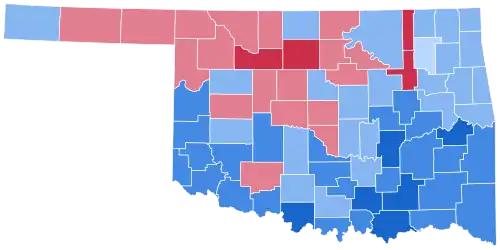 As of the 2024 presidential election, this is the last election in which a Democrat carried one of the three counties in the Oklahoma Panhandle, namely Cimarron County, as well as the last time Grant County, Jackson County, Rogers County, Adair County, Dewey County, Roger Mills County, Lincoln County, Creek County, Grady County, Logan County, McClain County, Pottawatomie County, and Wagoner County voted for a Democratic presidential candidate.[2] Carter's 532,442 votes is the most received by a Democratic presidential candidate in the state's history.