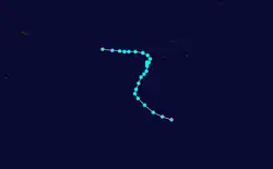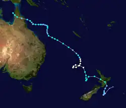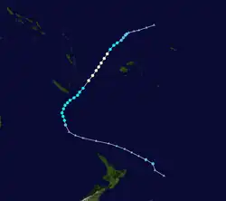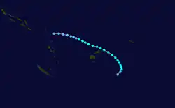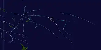 Tessa precursor tropical depression was first noted on December 5, while it was located in the southern Line Islands of Kiribati.[1][2] Over the next couple of days, the system moved southeastwards and gradually intensified, before it was named Tessa by the FMS during December 7.[1]