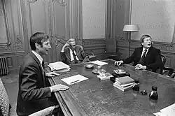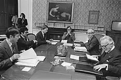For the CDA, the priority was also not entirely on the success of a cabinet, but on the formation of real unity in the CDA.[11] Within the parliamentary group there was division about governing. with the PvdA. ARP members led by Wim Aantjes were in favor, while KVP members such as Frans Andriessen and especially CHU members wanted to enter into confrontation. In any case, the starting point for participation in a cabinet with the PvdA was equality. For example, the CDA wanted as many ministerial positions as the PvdA. They did not want D'66 in the coalition anyway — after all, the party was not needed for a majority — so they thought that PvdA itself should give up ministerial positions for D'66. Another place for PvdA in the socio-economic triangle was out of the question, because Den Uyl, as Prime Minister, was constantly interfering with it. Van Agt had to return to Justice if he did not want to remain in Parliament. The CDA preferred to discuss abortion first and discuss the reform proposals in a broader socio-economic context.[12]