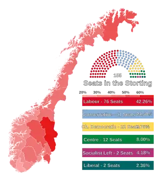 2. ^ Seven seats were won by joint lists, of which four went to the Christian Democratic Party, and one each to the Centre Party, the Conservative Party and the Liberal Party.[5]