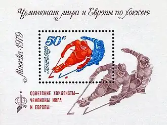 Soviet stamp sheet dedicated to the 1979 World Ice Hockey Championships