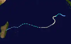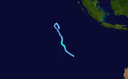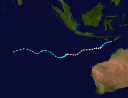 Formed on 3 November, just south of Selat Mentawai then moved southwestward before reaching a peak intensity of 110 knots (130 mph; 200 km/h) and a minimum pressure of 940.0 hectopascals (27.76 inHg) on 8 November. On 12 November the storm began to move northwestward and two days later dissipated over the open Indian Ocean.