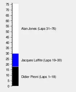 At the start, Pironi led with Laffite holding off Jones and Piquet passing Reutemann for fourth. Pironi held a comfortable lead until lap 19, when he suffered a deflating front tyre followed by a long pit stop to replace it. Laffite led until he too suffered a deflating tyre, causing him to spin off into catch fencing at Hawthorn Bend on lap 31. Thereafter, Jones retained a comfortable advantage over Piquet and Reutemann, while Pironi made a charge from the back of the field, reaching fifth before suffering another tyre failure on lap 64. It was later established that the Ligiers' problems were caused by their wheel rims cracking.[2]
