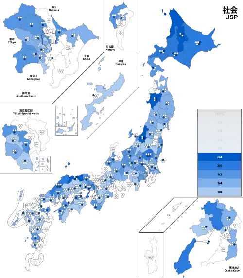 | Japan Socialist Party | 11,400,748 | 19.31 | 107 | 0 | |
