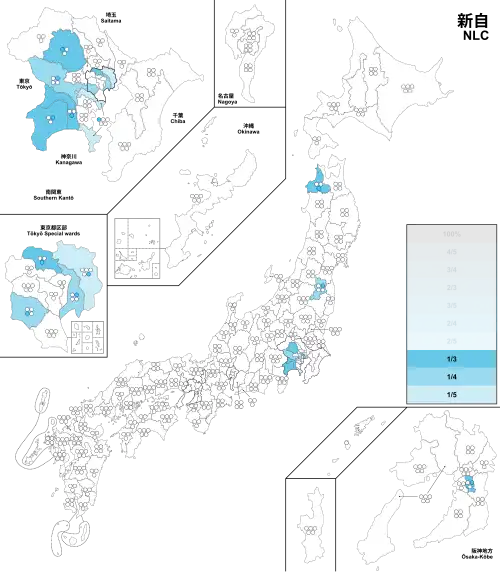 | Kanagawa | 19 | 5 | 5 | 3 | 2 | 1 | 3 | ||