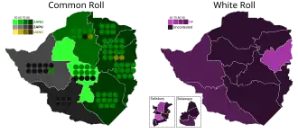 General elections were held in Southern Rhodesia between 14 February and 4 March 1980 to elect the members of the House of Assembly of the first Parliament of the independent Zimbabwe.[1][2] As stipulated by the new Constitution of Zimbabwe produced by the Lancaster House Conference, the new House of Assembly was to comprise 100 members, 80 of whom would be elected proportionally by province by all adult citizens on a common roll, and 20 of whom would be elected in single-member constituencies by whites on a separate roll.