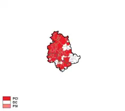 The Italian Communist Party was by far the largest party, gaining almost twice the votes of Christian Democracy. After the election, Germano Marri, the incumbent Communist President, continued to govern the Region at the head of a left-wing coalition with the Italian Socialist Party (Popular Democratic Front).