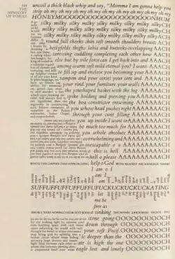 McLeish attempts to spend the night assembling an intricate pornographic fantasy. His cast of characters includes: Janine, based on a childhood memory of Jane Russell in The Outlaw; Superb (short for Superbitch); and Big Momma, an obese lesbian. All of these are submitted to sadomasochistic practices, parts of which are described at some length. However, McLeish constantly returns to reminiscences of his previous life and lovers. These prompt his attempted suicide. Chapter 11 of the novel is a typographical explosion, with the text splitting into several parallel voices on each page (including that of God). The crisis concludes with McLeish vomiting up the pills which he had hoped would kill him, and facing the truth of his actions as morning dawns.