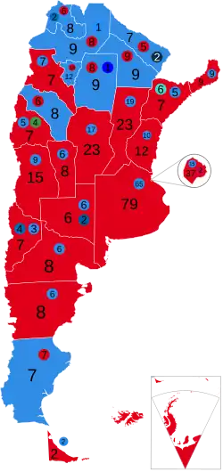 | Santiago del Estero | 103,225 | 38.61 | 3 | 127,388 | 47.65 | 4 | 36,745 | 13.74 | — |
