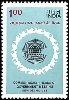 The 1983 Commonwealth Heads of Government Meeting was the seventh Meeting of the Heads of Government of the Commonwealth of Nations. It was held in New Delhi, India, between 23 and 29 November 1983, and was hosted by that country's Prime Minister, Indira Gandhi. The retreat was held in Goa. Discussions were held on three major topics โ the American Invasion of Grenada, the occupation of Namibia by South African and Cuban troops and the nuclear rivalry between the United States and the Soviet Union.[2]