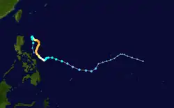- ^ A super typhoon is an unofficial category used by the Joint Typhoon Warning Center (JTWC) for a typhoon with winds of at least 240 km/h (150 mph).[3]