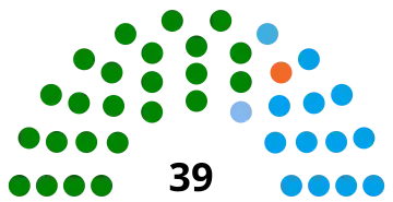 All 39 seats in Parliament 20 seats needed for a majority |