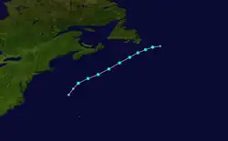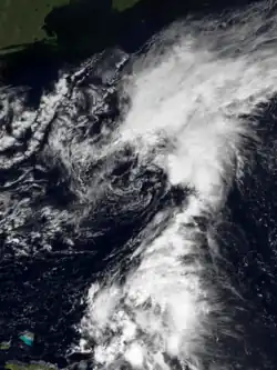 A second storm formed on August 31 as a non-tropical low strengthened into Tropical Storm Cesar off the East Coast of the United States. Cesar traveled east-northeast and strengthened gradually until it became extratropical and merged with another system off the coast of Newfoundland on September 2.[20]
