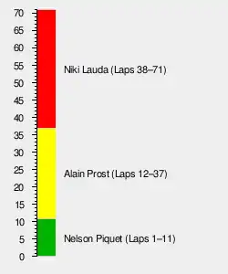 Lauda's win saw him move to 33 points and with Prost failing to finish his championship lead was cut to just 1.5 points. With 67.5 points, McLaren had scored almost double the number of Constructors' points than second placed Ferrari who were on 34.5 points.