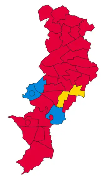 | Labour Party | 75,337 (57.0%) | 29 (82.9%) | 29 / 35