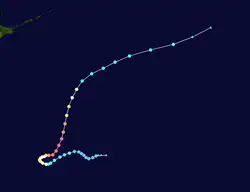 | Peak intensity | 150 km/h (90 mph) (10-min); 950 hPa (mbar) |