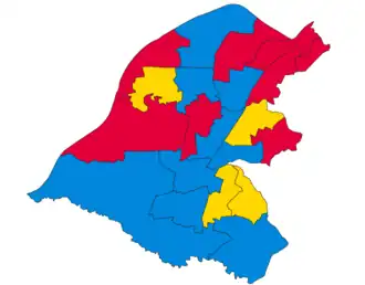 | Labour Party | 26,112 (35.7%) | 8 (38.1%) | 8 / 21