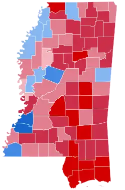 As of the 2024 presidential election, this is the last election in which the following counties voted for a Republican presidential candidate: Clay, Jefferson Davis, Sunflower, and Tallahatchie.[2] This marked the first time in history that Mississippi voted Republican in consecutive elections (or that a Republican carried the state twice), and the first such occasion for any party since 1956.