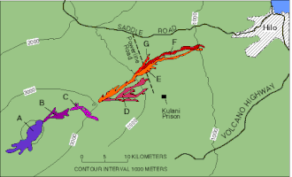 ![]() Map showing areas covered by ‘a‘ā lava flows during the 1984 eruption of Mauna Loa | |